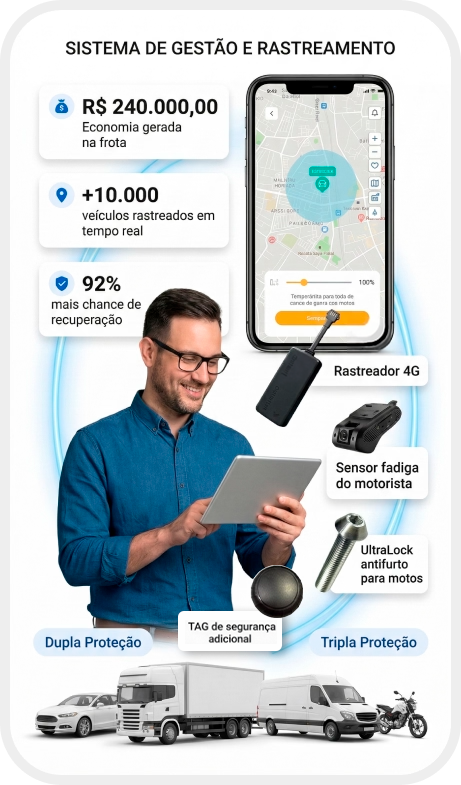 Não é só rastrear. É ter tecnologia + suporte humano pra agir rápido em situações críticas.